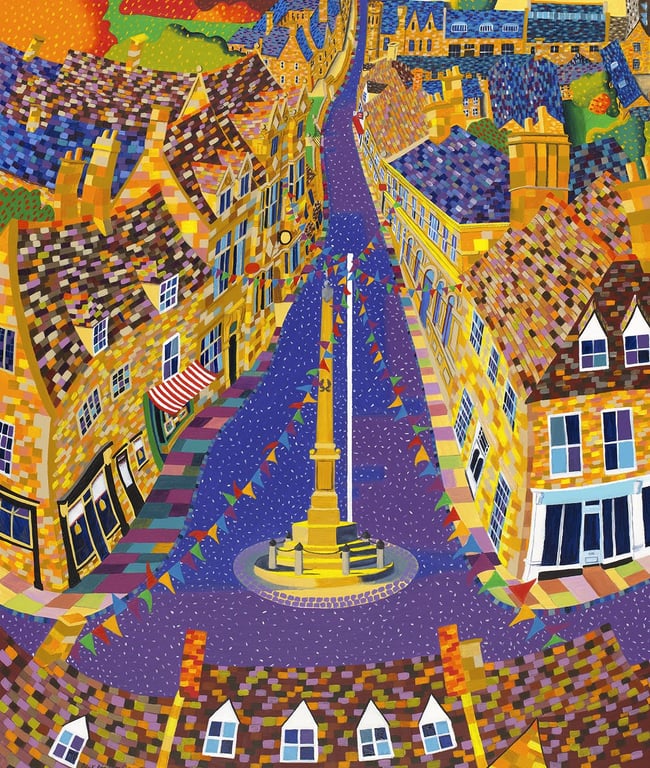 Signed, numbered, Limited Edition Giclée print of "Oundle New Street Bunting" by Mikki Longley. Size (image area) 52.4 x 61cm please check dimensions